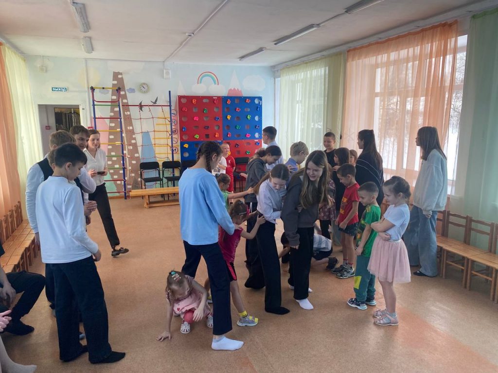 После представления ребята из шестого класса организовали для детей подготовительной группы увлекательные игры на сплочение и развитие коммуникативных навыков. В программе были такие игры, как «Я банан», «Мы охотимся на льва» и «Я червяк». Дети активно участвовали в играх, проявляя интерес и радость от общения друг с другом.