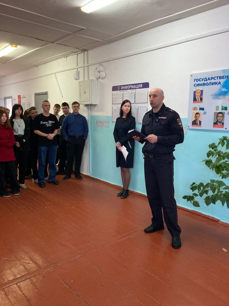 В целях повышения эффективности проведения профилактической работы по предупреждению безнадзорности и правонарушений несовершеннолетних, формирования правосознания граждан и воспитания активной гражданской позиции по вопросам предупреждения и пресечения преступлений и правонарушений, совершаемых несовершеннолетними, формирования норм безопасности жизнедеятельности, а также профилактики дистанционного вовлечения несовершеннолетних в совершении преступлений, в том числе за денежное вознаграждение 13.02.2025 в МАОУ СШ № 9 был приглашен Участковый уполномоченный Черноус А.Н. Открытый диалог с обучающимися был направлен на предупреждение и пресечение экстремистской деятельности, формирование у граждан (в том числе молодежи) нетерпимости к экстремистской идеологии. Альбин Николаевич привел примеры из практики агрессивного поведения несовершеннолетних, напомнил с какого возраста наступает ответственность за правонарушения. Также отметил вопросы, связанные с соблюдением «Комендантского часа», о запрете нахождения несовершеннолетних детей без родителей (законных представителей) в местах, где может быть причинен вред здоровью ребенка. Не секрет, что среди нечистых на руку, пытающихся пронести товар мимо кассы в магазине, немало подростков. При этом, особую озабоченность вызывает одержимость несовершеннолетних хищениями малогабаритных товаров в магазинах сетевой торговли. Одним из доказательств факта преступного деяния является запись системы видеонаблюдения, установленная в каждом магазине. Поэтому каждое общественное противоправное и противозаконное деяние несет за собой последствие в виде привлечения к ответственности.