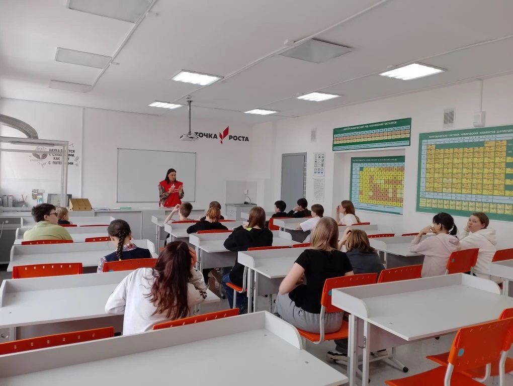 18 марта 2026 года в рамках реализации модуля «Химия в белом халате» ДООП «За страницами учебника химии» в центре образования «Точка роста» преподавателем Красноуфимского филиала ГБПОУ «Свердловский областной медицинский колледж» Комаровой Надеждой Викторовной было организовано занятие на тему «Дезинфекция и здоровье: роль дезинфицирующих средств в нашей жизни».