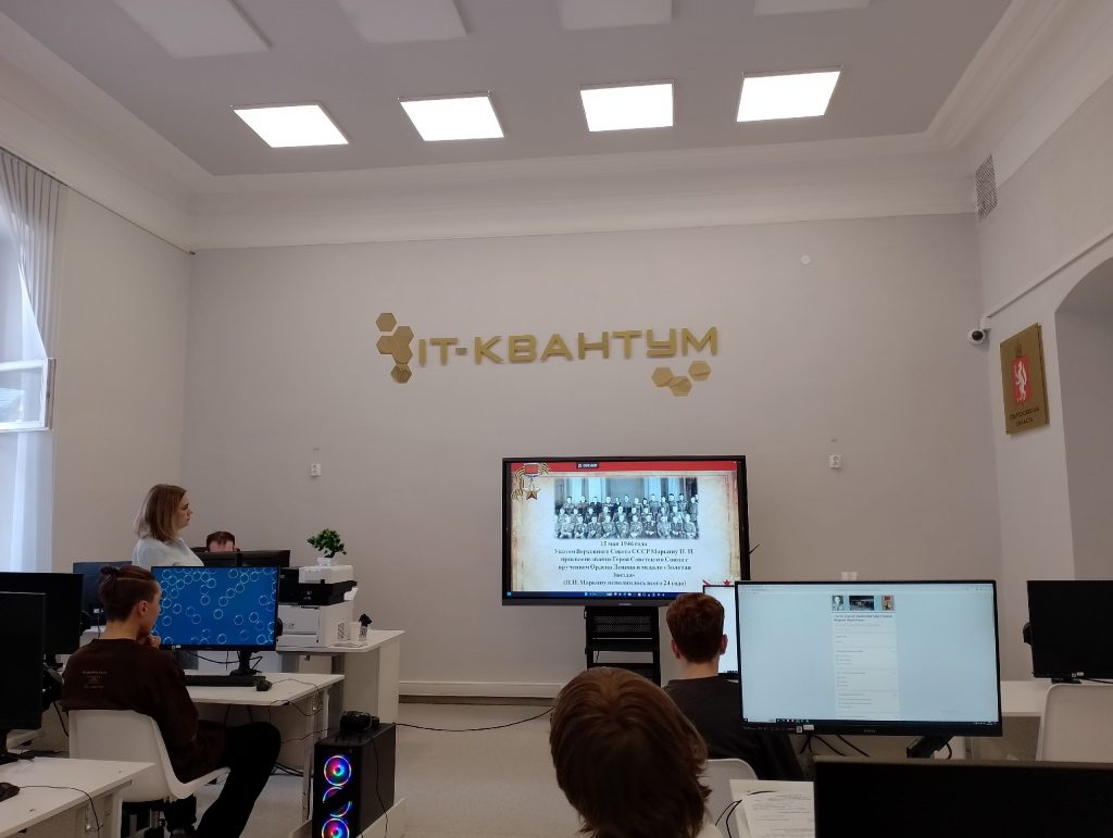 Данный конкурс был посвящён памяти Героя Советского Союза, участника ВОВ, Марьина Ивана Ильича, где обучающиеся познакомились с его биографией и смогли ответить на вопросы.