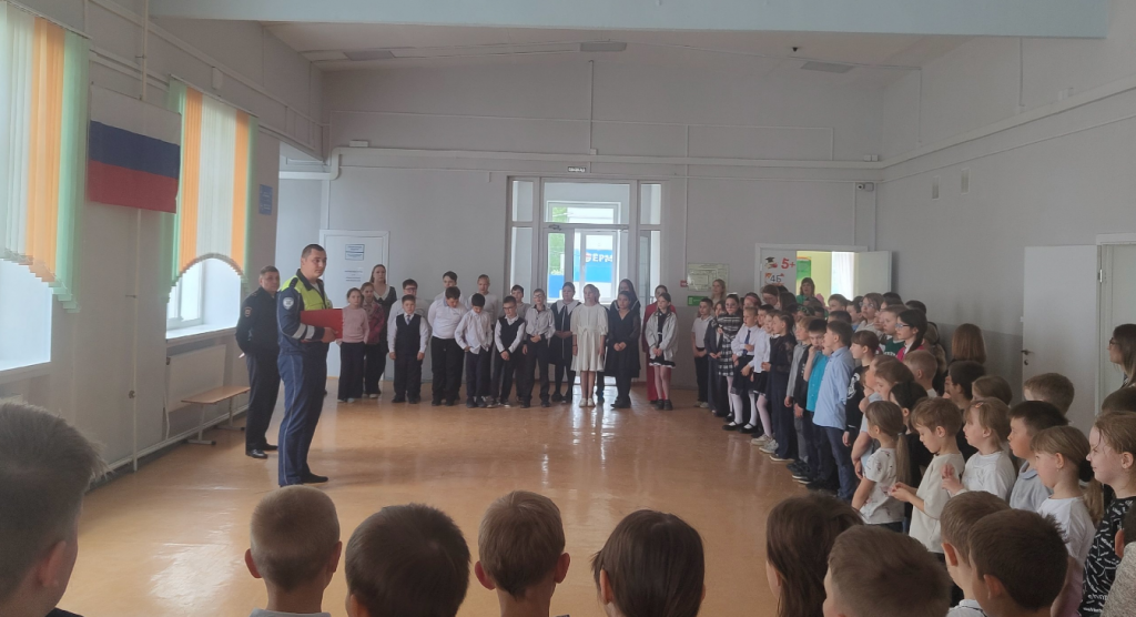 Сотрудники Госавтоинспекции начали проводить профилактические беседы со школьниками в преддверии летних каникул. 23 мая начальник Госавтоинспекции МО МВД России «Красноуфимский» Безденежных Д.В., и инспектор ГИБДД Окунев И.О. провели линейку с учащимися начальных классов МАОУ СШ № 9 и проверили наличие и оформление стендов по дорожной безопасности. Специалисты рассказывали детям о том, как не попасть в беду на дороге, что значит «слышать дорогу», почему нельзя неожиданно выбегать на проезжую часть, какие опасности могут поджидать во дворе, где можно кататься на велосипеде.