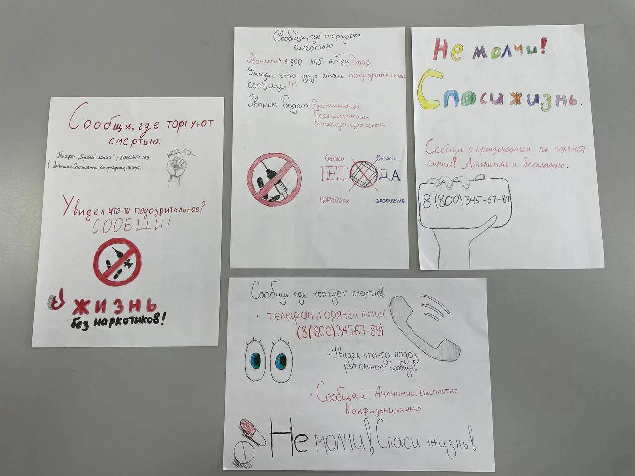 Волонтерами медицинского класса были распространены информационные листовки педагогам, учащимся, жителям нашего села. Эти материалы содержат важные рекомендации и телефоны горячей линии, куда можно анонимно сообщить о фактах распространения наркотиков.