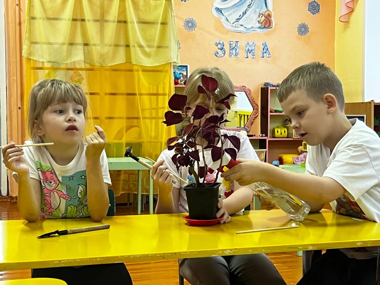 Она показала, как правильно поливать, опрыскивать и рыхлить почву, а также представила необходимые инструменты для садоводства. На протяжении всего занятия дети были увлечены объяснениями педагогов, а после сами попробовали применить новые знания на практике. В заключении детей ждал сюрприз — весёлая подвижная игра «Собери с полянки цветочки», где команды начали состязание, соревнуясь в скорости сбора цветов.
